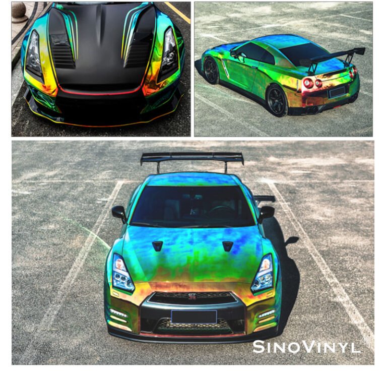 Crafted from high-quality vinyl material, the Chrome Rainbow Ammolite Green Vinyl Wrap Car is built to withstand various weather conditions, it offers protection against minor scratches, UV damage, and fading, ensuring long-lasting performance and preserving your car’s original paintwork.